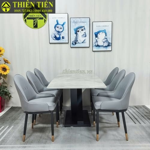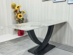 101- Bàn ăn chân bát (chân U) 1m6 mặt đá xanh ý (Hàng MỚI 100%)