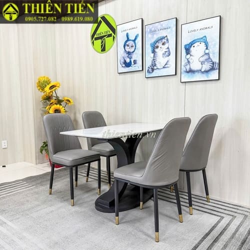 101- Bàn ăn chân CHANEL 1m2 mặt đá trắng (Hàng MỚI 100%)