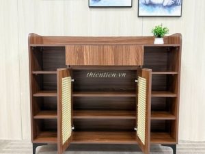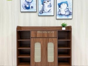 Tên sản phẩm: Tủ giày 2 cánh MÂY + 2 kệ NÂU CHÂN SẮT