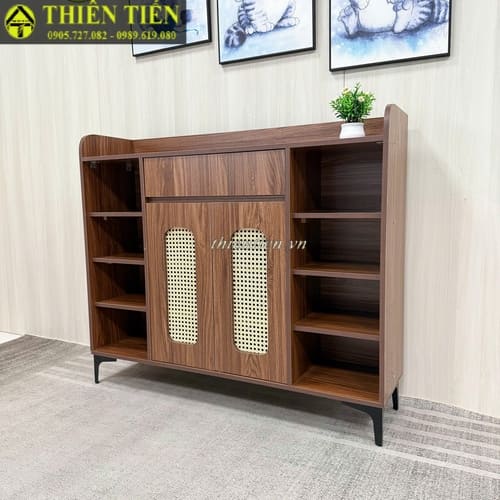 108- Tủ giày 2 cánh MÂY + 2 kệ NÂU CHÂN SẮT (Hàng MỚI 100%)