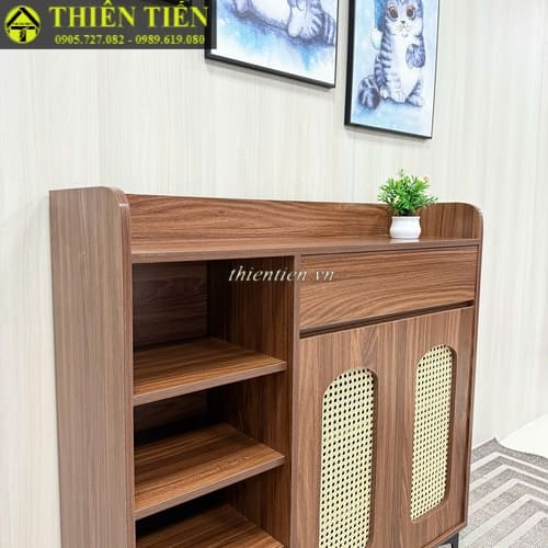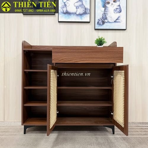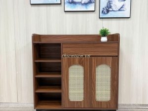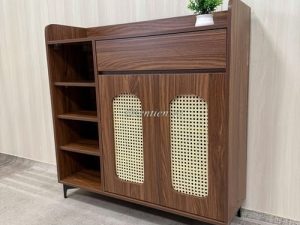 Tên sản phẩm: Tủ giày mây 2 cánh + 1 kệ nâu CHÂN SẮT