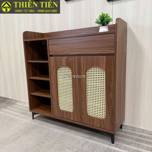 108-Tủ giày mây 2 cánh + 1 kệ nâu CHÂN SẮT (Hàng MỚI 100%)