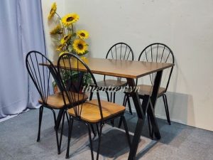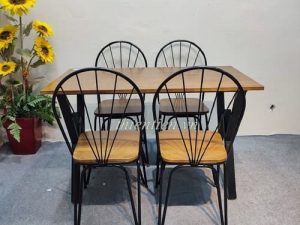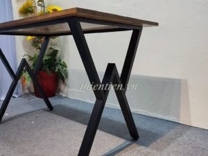 Chất liệu: mặt gỗ cao su, chân sắt