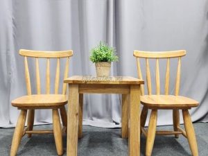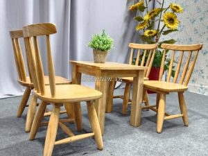 Chất liệu: mặt gỗ cao su ghép, chân gỗ thông