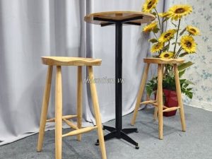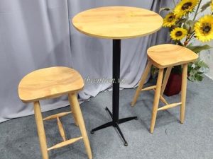 Chất liệu: chân gỗ tiện tròn, mặt gỗ cao su ghép