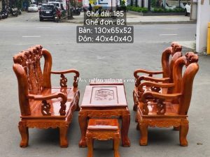 Chất liệu: gỗ cao su, nệm ngồi simili.