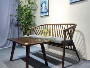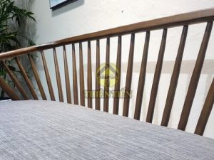 Chất liệu: gỗ cao su tự nhiên, nệm bọc nỉ