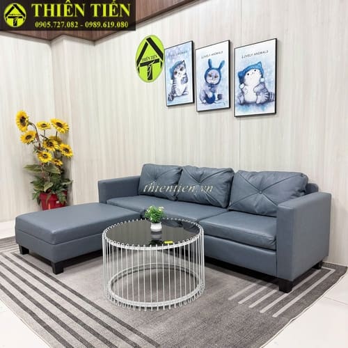 73-Sofa góc L 2m2 da xám xanh (Hàng MỚI 100%)