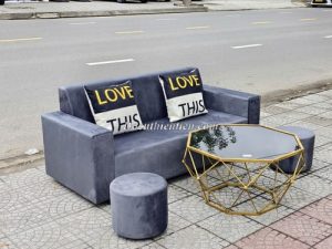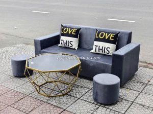H020226 – Ghế sofa tay vuông kèm đôn xanh ( k bàn)