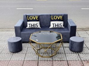 H020226 – Ghế sofa tay vuông kèm đôn xanh ( k bàn)