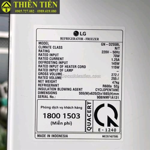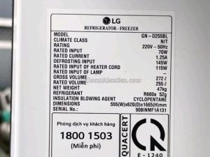 Tên sản phẩm: Tủ lạnh LG GN-D255BL