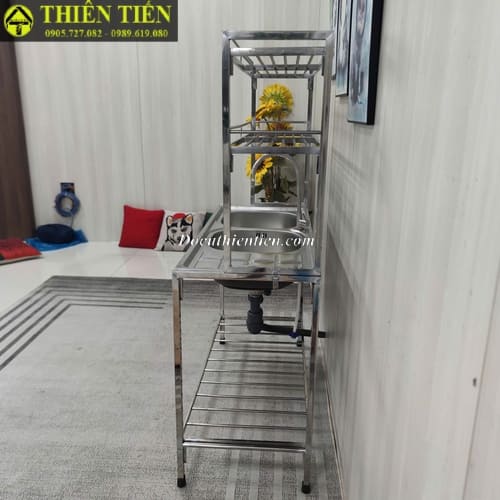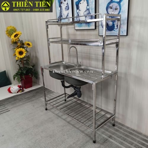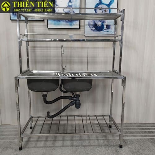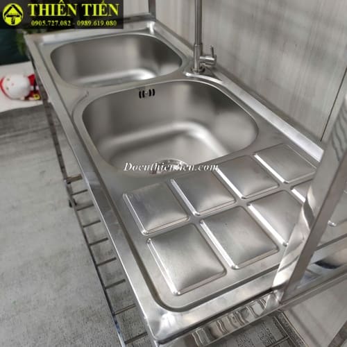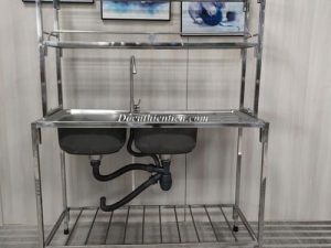Tên sản phẩm: Bồn rửa đôi có chờ kèm kệ