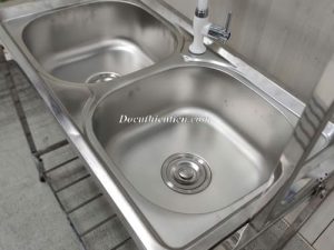 Tên sản phẩm: Bồn rửa đôi kèm kệ