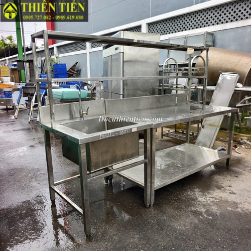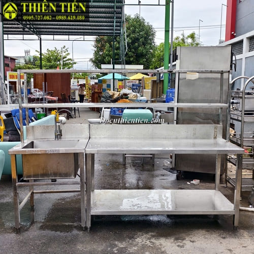 Tên sản phẩm: Bàn bếp inox 2 tầng + bồn rửa + kệ