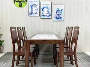 25- Bộ bàn ăn 6 ghế xoan đào Nam Phi KÍNH (Hàng MỚI 100%)